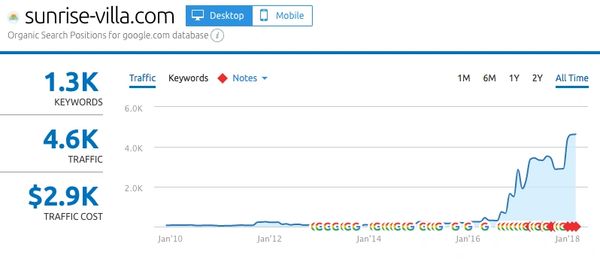 First party analytics data are safe with us, but we like showing off, so we lean on tools like SEMRush to brag about organic traffic. Check out charts below.