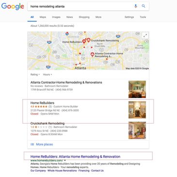 We've helped clients secure local pack rankings for highly competitive terms like "home remodeling Atlanta"